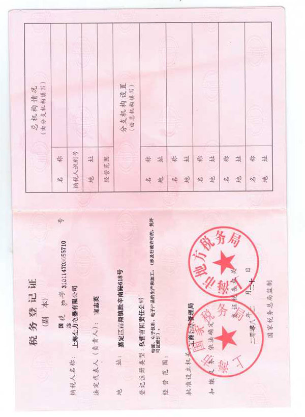 • 稅務(wù)登記證