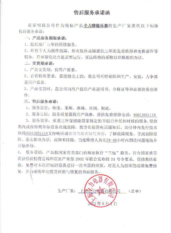 售后服務(wù)承諾